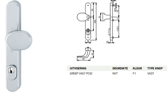 VOORDEUR STANDAARD ALUMINIUM DEURKNOP BUITENZIJDE MET KERNTREK